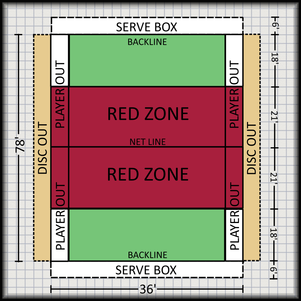- DEADZONE: If the disc makes first contact in the dead zone of the court on a player's throw, the point is awarded to the opposing player who did not throw the disc.
